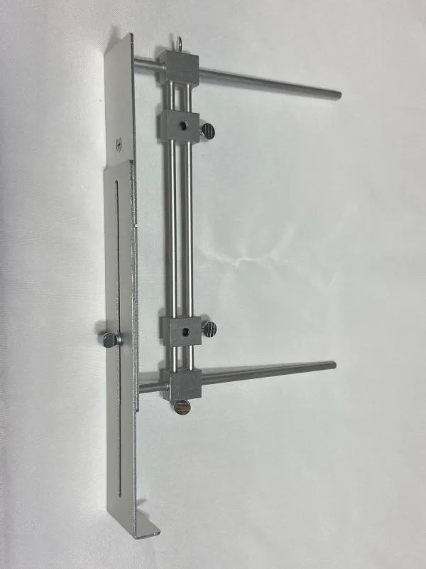 - Ez Add Hardware Jig's adjustable sliding stops, lock in place, to align the drill guide